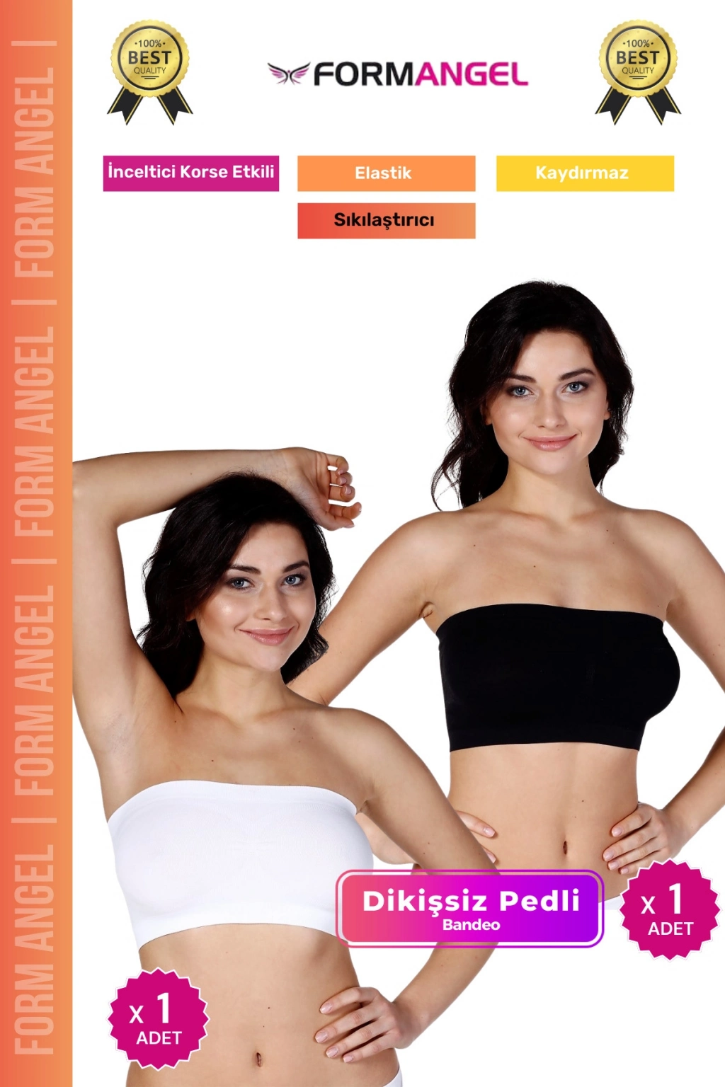 #Bandeo Seamless Toparlayıcı Kadın Basic Örme Dikişsiz Pedli Bandeo Büstiyer 2'li Set