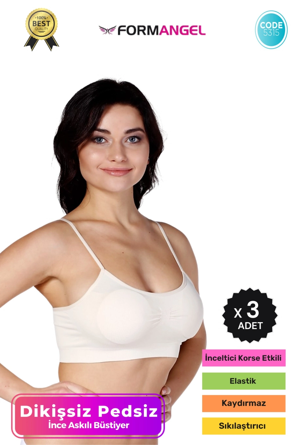 #Büstiyer Dikişsiz Seamless Kadın Esnek Yumuşak Kumaş İp Askılı Pedsiz Spor Büstiyer - 3 Adet