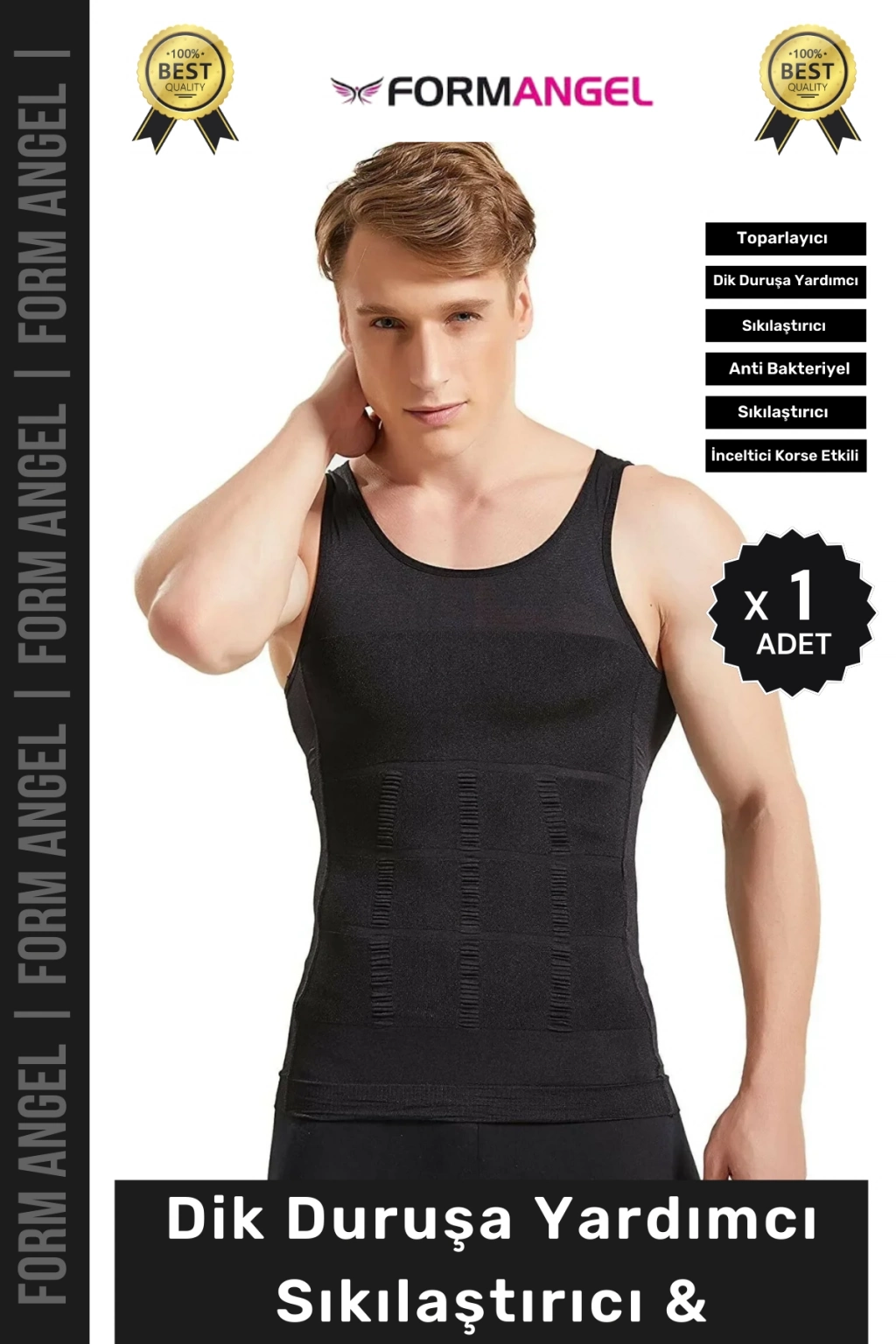 #ErkekKorse Dik Duruş Vücut Bel Göğüs Toparlayıcı Göbek Sıkılaştırıcı Erkek Korse Atlet - 1 Adet