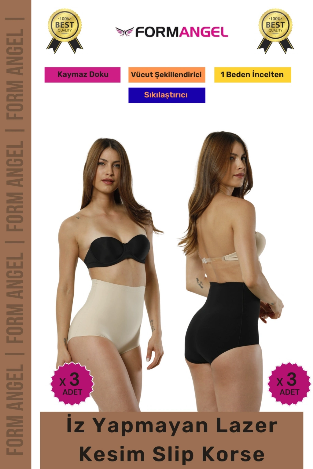 #Korse 2 Beden İncelten Toparlayıcı İz Göstermeyen Kaymaz Kadın Lazer Kesim Slip Korse 6'lı Set