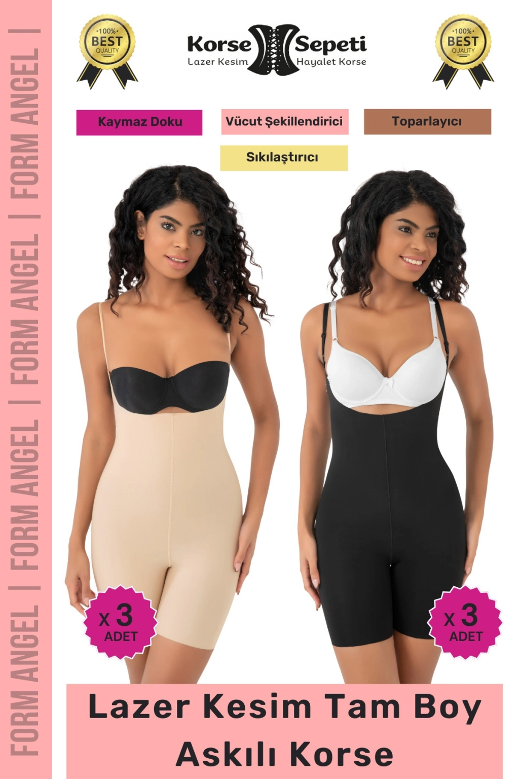 #Korse 2 Beden Küçülten Sıkılaştırıcı Kaymaz Kadın Lazer Kesim Tam Boy Askılı Korse 6'lı Set