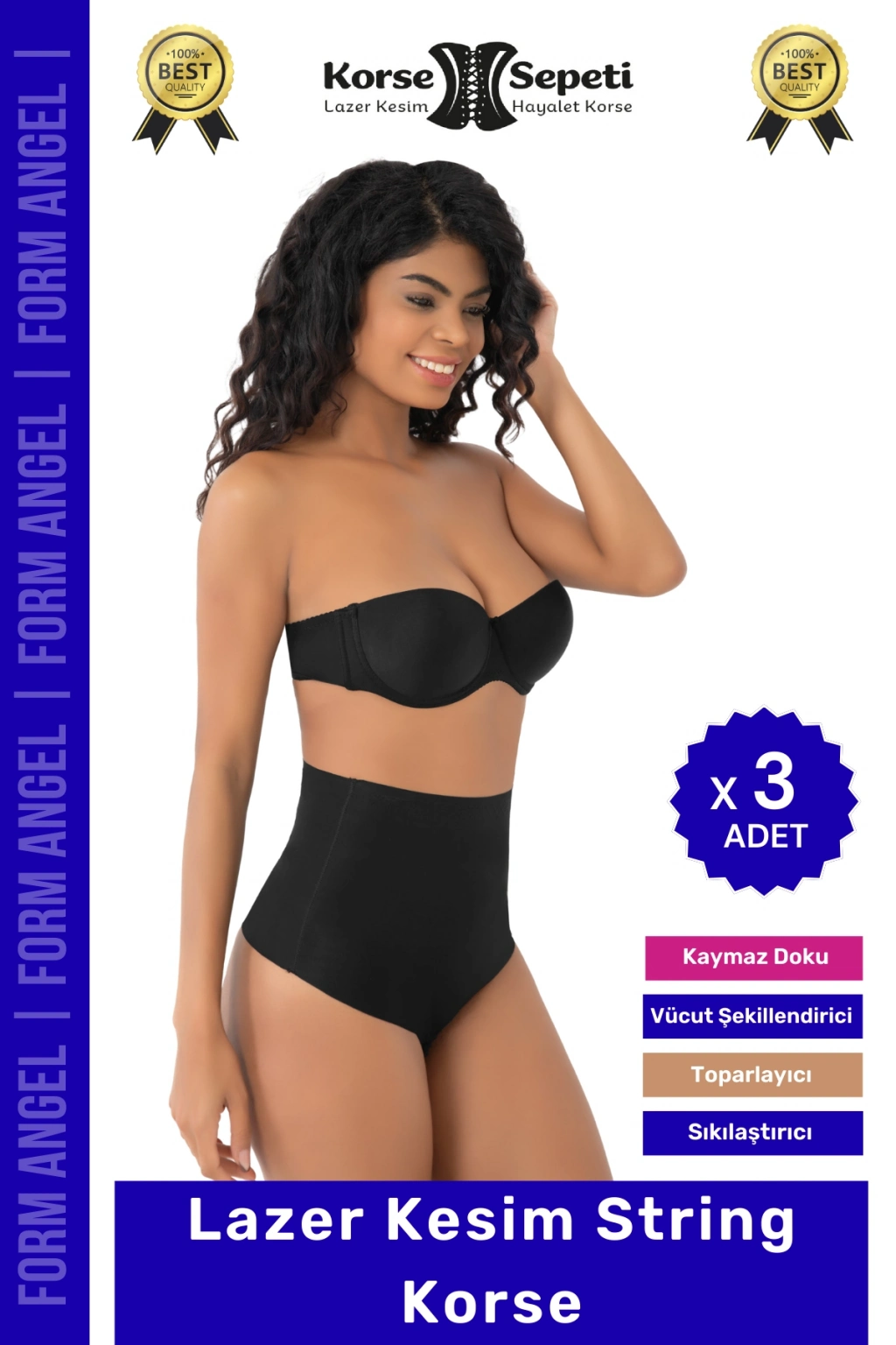 #Korse İz Yapmaz Göstermeyen Kaymaz Doku Toparlayıcı Sıkılaştıran Lazer Kesim String Korse - 3 Adet
