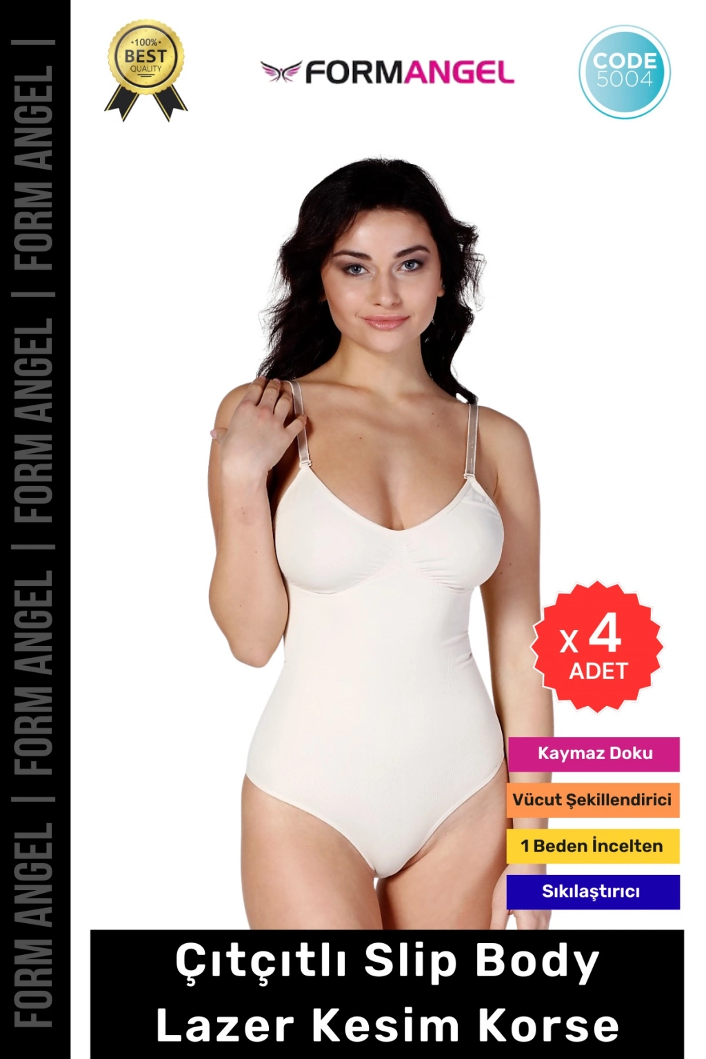 #Korse Lazer Kesim Seamless İz Göstermeyen Toparlayıcı Kaymayan Çıtçıtlı Slip Body Korse - 4 Adet