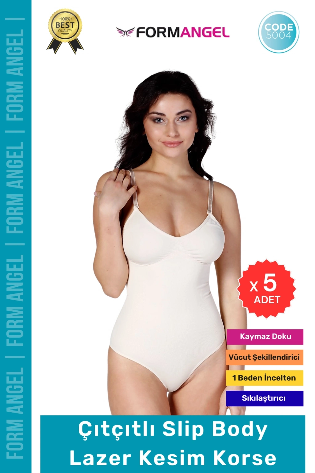 #Korse Lazer Kesim Seamless İz Göstermeyen Toparlayıcı Kaymayan Çıtçıtlı Slip Body Korse - 5 Adet