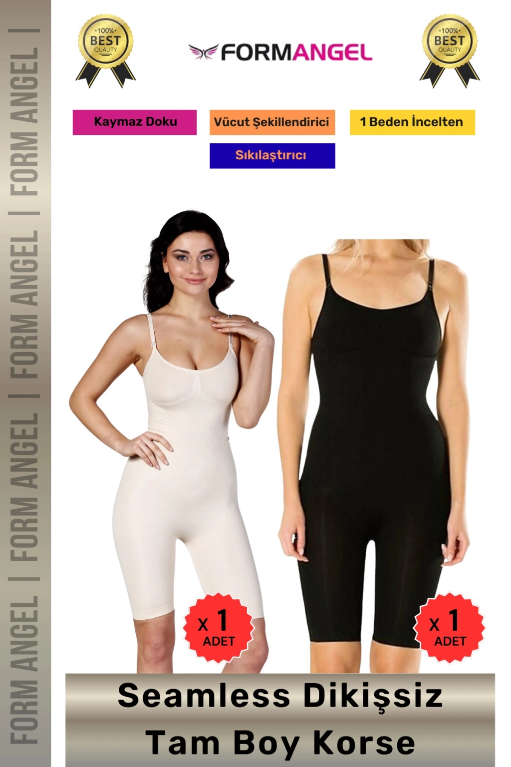 #Korse Masaj Özellikli İz Göstermeyen Kaymaz Dikişsiz Toparlayıcı Kadın Tam Boy Korse 2'li Set