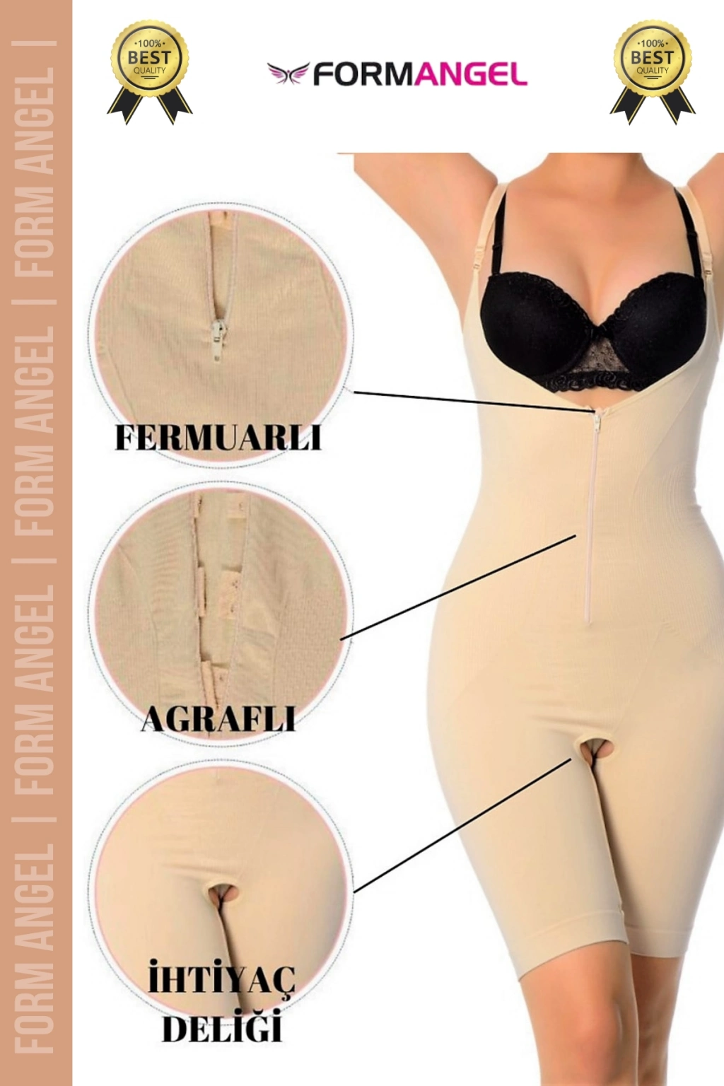 • İç giyim koleksiyonunuzda vazgeçilmez bir parça olacak fermuarlı agraflı tam paçalı korse, günün her saati konfor ve şıklığı bir arada sunar