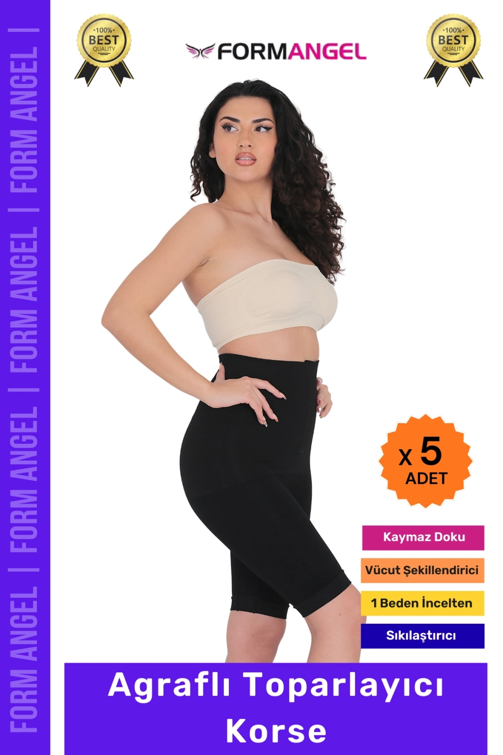 #Korse Yüksek Bel Karın Mide Toparlayıcı Popo Sıkılaştırıcı Paçalı Kadın Agraflı Korse - 5 Adet