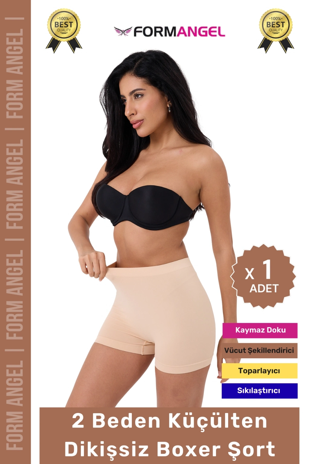 #Şort 2 Beden Küçülten Toparlayıcı Bel Sıkılaştırıcı Şekillendirici Yüksek Bel Dikişsiz Boxer Şort